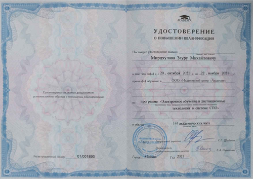 УДОСТОВЕРЕНИЕ О повышении квалификации